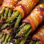 Bacon Wrapped Green Beans is a savory side dish featuring fresh green beans bundled in crispy bacon, glazed with a buttery brown sugar and garlic mixture, then roasted to perfection for a flavorful, tender bite.