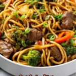 This Beef Lo Mein recipe features tender strips of sirloin steak stir-fried with crisp vegetables and tossed with classic Lo Mein noodles in a savory, slightly sweet sauce made with beef and chicken broth, soy sauce, garlic, and a touch of spice. Perfect for a quick and flavorful weeknight dinner, it combines a rich depth of flavor with satisfying textures for a comforting Asian-inspired meal.