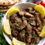 This Beef Shawarma recipe features tender strips of marinated strip steak cooked quickly on a hot griddle for a flavorful Middle Eastern dish. The marinade combines aromatic spices like cumin, coriander, paprika, and allspice with olive oil, lemon juice, and garlic to create a rich, savory flavor profile. Ideal for serving in pita bread, over rice, or with fresh vegetables and sauces for a delicious and authentic shawarma experience at home.