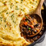 To avoid the mashed potatoes getting soggy, make sure the beef filling has thickened properly before topping it with the mash, and don’t pile the potatoes on too thickly. Also, baking on the upper rack and crisping the topping with a fork pattern helps create that perfect crust.