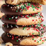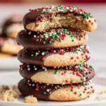 I dip each cookie halfway in the chocolate, letting the excess drip before placing it on parchment. Then, while the chocolate is still wet, I sprinkle on those joyful holiday sprinkles. Let them sit for about an hour so the chocolate sets beautifully.