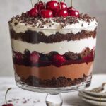 This Black Forest Trifle is a luscious layered dessert featuring chocolate cake, cherry pie filling, rich chocolate pudding, and homemade whipped cream. Perfectly balanced with cherry brandy or kirsch, it’s an elegant treat to impress your guests. The trifle is easy to assemble and benefits from chilling overnight for the best melding of flavors, garnished with fresh cherries and chocolate shavings for a classic finish.