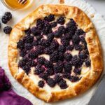 A delightful Blackberry, Feta, and Honey Galette combining a flaky homemade pie crust with a luscious whipped feta spread, fresh blackberries tossed in a sweet lemony mixture, all baked to golden perfection and drizzled with honey for a perfect balance of sweet and tangy flavors.