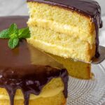 - Assemble the Boston Cream Pie: Place one cake layer on a serving plate, spread custard evenly on top, then top with second cake layer. Pour chocolate glaze over the cake, allowing some to drip down the sides. Chill the assembled cake in the refrigerator for at least 1 hour to set glaze and firm custard.