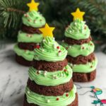 Create festive Brownie Christmas Trees using baked brownies, green frosting, and holiday decorations. This fun and easy recipe layers brownie circles cut with cookie cutters, frosted to resemble Christmas trees, and topped with sprinkles and stars.