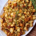 I love how adaptable this Buttery Herb Stuffing Recipe is. Sometimes I swap rosemary for thyme or add a handful of toasted pecans for crunch. You should feel free to tweak it based on what herbs and bread you have on hand to make it truly yours.
