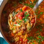 A hearty and flavorful Cabbage Roll Soup that captures the comforting taste of traditional cabbage rolls in an easy-to-make, warming soup. Filled with lean ground beef, fresh vegetables, tomato sauce, and rice, this soup is perfect for a satisfying dinner.