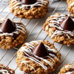 Delightfully chewy and flavorful Cherry Blossom Cookies featuring whole rolled oats, dried tart cherries, and a luscious chocolate kiss center, optionally drizzled with vanilla almond bark for an elegant finish.