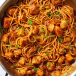 - Toss Pasta and Serve: Add the cooked spaghetti to the skillet with sauce and chicken. Toss to evenly coat the pasta with sauce. Garnish with additional parsley if desired and serve immediately, ideally with garlic bread topped with cheese.