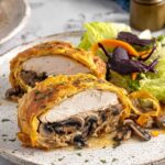 Chicken Wellington is a delicious dish featuring tender chicken breasts wrapped in flaky puff pastry with a savory mushroom and cream cheese filling. This elegant yet approachable recipe combines seared chicken, a flavorful mushroom mixture, and a golden baked pastry crust, perfect for a special dinner or entertaining guests.