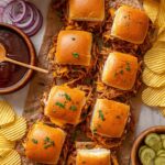 These Chipotle Cheddar BBQ Chicken Sliders are perfect for a flavorful party appetizer or casual meal. Juicy shredded chicken tossed in barbecue sauce is layered with melted cheddar cheese, zesty chipotle mayo, and sweet Hawaiian rolls toasted to perfection, then baked until gooey and golden.