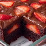 Decadent chocolate covered strawberry brownies combining rich fudgy brownies with a layer of fresh strawberries and smooth chocolate ganache topping. Perfect for a special dessert or party treat.
