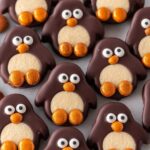 Peanut Butter Penguins are adorable, no-bake treats featuring Nutter Butter cookies dipped in a decadent dark chocolate and peanut butter coating, decorated with mini Nilla wafers, Reese’s pieces, and candy eyes to create charming penguin shapes. Perfect for holiday parties or fun snacks, these frozen delights are both delicious and visually delightful.