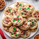 Christmas Kitchen Sink Cookies are a festive and fun treat packed with a delightful mix of sweet and salty ingredients, including M&M's, white chocolate chips, pretzel pieces, and potato chip pieces. These colorful and chewy cookies are perfect for holiday celebrations and are easy to make with a simple baking process.