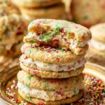 Delight in festive cheer with these Christmas Oatmeal Cream Pies, featuring soft oatmeal cookies studded with colorful dye-free sprinkles and filled with a fluffy, vanilla-almond buttercream. Perfect for holiday gatherings, these sandwich cookies blend classic comfort with a joyous twist.