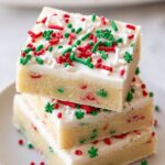 These festive Christmas Sugar Cookie Bars combine soft, buttery sugar cookie dough with a creamy vanilla frosting and colorful holiday sprinkles, perfect for holiday gatherings and celebrations.