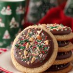 - Decorate Cookies: Spoon melted chocolate on cooled cookies and spread to cover most of the top. Sprinkle toasted pecans, extra toffee bits, and holiday sprinkles over chocolate. Let chocolate set before serving.