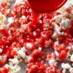 A festive and spicy sweet snack, Red Hot Cinnamon Candy Popcorn combines crunchy popcorn coated in a cinnamon candy glaze with drizzles of smooth white chocolate and vibrant red sprinkles for a fun and flavorful treat perfect for sharing.