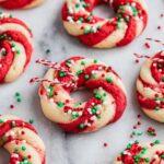 Wreath Butter Cookies are delightful, buttery treats with vibrant red and green swirls, perfect for festive occasions. These soft, melt-in-your-mouth cookies are beautifully piped into wreath shapes and decorated with colorful sprinkles, making them both visually appealing and delicious.