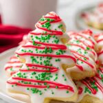 This Copycat Little Debbie Christmas Tree Cakes recipe features a moist yellow cake layered with a fluffy marshmallow buttercream filling, then coated in smooth white almond bark and decorated with festive red candy melts and green sanding sugar. Perfect for holiday celebrations, these charming tree-shaped treats combine classic flavors with fun seasonal flair.