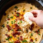 Slow Cooker Crack Chicken Dip is an irresistible creamy and cheesy appetizer featuring shredded chicken, Velveeta cheese, bacon, and ranch seasoning cooked to perfection in a slow cooker. Perfect for game day, holiday gatherings, and parties, this dip is sure to be a crowd-pleaser.