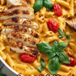 This Caprese Pasta recipe features tender Italian seasoned chicken breast and al dente penne pasta tossed in a creamy, flavorful sauce made with butter, garlic, white wine, tomato paste, half and half, chicken broth, Parmesan, cherry tomatoes, and cubes of mozzarella. Finished with fresh basil and optional balsamic glaze, it’s a comforting and elegant dinner perfect for any night.