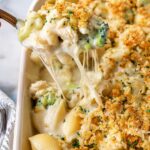 - Assemble the Casserole: Add the cooked pasta and broccoli to the Alfredo sauce and stir well to combine. Mix in the diced chicken pieces. Transfer the mixture into a lightly greased 9 x 13 inch casserole dish. Sprinkle 2 cups shredded mozzarella cheese evenly over the top.