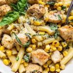 Store leftover Creamy Chicken and Corn Pasta in an airtight container in the refrigerator for up to 3 days. I find the sauce thickens as it sits — you might want to loosen it with a splash of milk or cream when reheating.