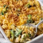 This Chicken and Broccoli Pasta Bake is a comforting and creamy casserole featuring tender chicken, tender-crisp broccoli, and fusilli pasta, all enveloped in a rich cheddar and Parmesan cheese sauce. Baked to perfection and topped with crispy fried onions, this dish is perfect for a hearty family meal.