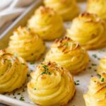 This Best Duchess Potatoes recipe offers a creamy, flavorful twist on classic mashed potatoes, piped into elegant swirled mounds and baked to a golden perfection. Made with Yukon gold potatoes, garlic, Parmesan, and rich butter and cream, these potatoes make a perfect side dish for any special meal or holiday dinner.