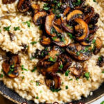 A creamy baked mushroom risotto featuring tender cremini mushrooms sautéed to golden perfection and Arborio rice baked in warm chicken broth with aromatic shallots, garlic, and fresh Parmesan cheese. This recipe simplifies traditional risotto by baking it in the oven, ensuring perfectly cooked rice with a luscious, creamy texture balanced by savory mushrooms.