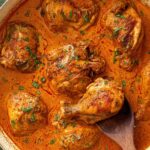 Chicken Paprikash is a classic Hungarian comfort dish featuring tender, browned chicken thighs and drumsticks simmered in a rich, creamy paprika sauce made with sweet Hungarian paprika, onions, garlic, and sour cream. This hearty main course is perfect for warming up on a cozy night and garnished with fresh parsley for a burst of color and flavor.