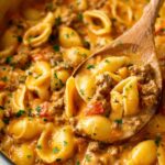 This one-pot Taco Pasta recipe combines ground beef, a blend of melted cheeses, and a flavorful mix of taco seasoning, tomato paste, and Rotel tomatoes with pasta shells. It's a creamy, cheesy, and saucy dish that’s quick to prepare, perfect for a comforting weeknight meal with minimal cleanup.