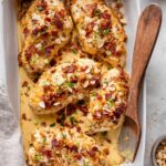 Million Dollar Chicken is a delicious baked chicken dish topped with a creamy, cheesy mixture enhanced by crispy bacon and crunchy almonds. Perfectly seasoned and baked to juicy perfection, this flavorful dish pairs wonderfully with rice, pasta, or your favorite vegetables.
