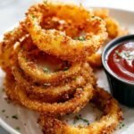 Crispy Onion Rings are a classic appetizer featuring large rings of onion coated in a seasoned panko and parmesan mixture, then fried or baked to a golden brown. Perfectly crunchy on the outside and tender inside, they make an irresistible snack or side dish.
