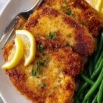 Crispy breaded pork chops baked to perfection and served with fresh lemon wedges, offering a flavorful and tender main course that's easy to prepare.