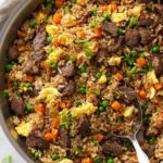 A flavorful Beef Fried Rice recipe featuring tender strip steak, savory sauce, and perfectly cooked rice for a delicious homemade takeout experience.