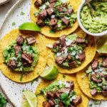 These Carne Asada Tacos feature tender marinated flank or skirt steak grilled to perfection and served on warm corn tortillas with fresh toppings like diced onions, cilantro, crumbled cotija cheese, and a squeeze of lime. Marinated with a vibrant blend of citrus, spices, and jalapeño, these tacos offer an authentic and flavorful Mexican street food experience perfect for gatherings or a delicious weeknight meal.