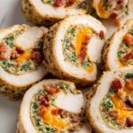Chicken Roulade is a flavorful and elegant dish featuring thinly pounded chicken breasts rolled with crispy bacon, steamed broccoli, cheddar, and Parmesan cheeses, then seared and baked to perfection. This recipe is perfect for a comforting yet impressive main course served alongside classic sides like mashed potatoes and green beans.