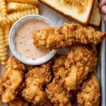 - Drain and Serve: Transfer fried tenders to a baking pan lined with paper towels or a wire rack to drain excess oil. Serve immediately with crinkle-cut fries and homemade Cane’s sauce for an authentic experience.