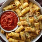 Air Fryer Pasta Chips are a crispy and flavorful appetizer made by air-frying cooked rigatoni noodles. Tossed in a garlic-infused olive oil and topped with grated parmesan cheese, these chips offer a unique twist on traditional snacks and pair perfectly with marinara or garlic dipping sauces.
