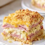 This Reuben Casserole is a hearty and delicious dish that captures the classic flavors of a Reuben sandwich in a convenient casserole form, perfect for feeding a crowd. It features layers of rye bread, pastrami, sauerkraut, Swiss cheese, and a tangy special sauce made from Thousand Island dressing and mustard.