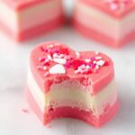 Delightfully sweet and creamy Valentine Hearts Fudge made with layers of smooth white chocolate and sweetened condensed milk, tinted with vibrant red food coloring, and topped with festive heart-shaped sprinkles. Perfect for gifting or celebrating special occasions with a homemade touch.