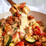 This Zucchini Chicken Caprese is a quick, one-pan, 30-minute meal that combines tender seasoned chicken breast with sautéed zucchini, tomatoes, and melted mozzarella balls for a fresh and flavorful low-carb dinner perfect for any weeknight.