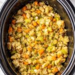 - Cook the stuffing: Add the box of stove top stuffing mix to the slow cooker along with the reserved cooking liquid. Stir to combine well, cover with lid, and cook on high for 10 minutes.