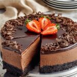 Decadent chocolate cheesecake featuring a rich chocolate cookie crust, creamy chocolate-infused filling, and a luscious ganache topping. This dessert is perfect for chocolate lovers looking for a smooth and indulgent treat that's easy to prepare and impressively delicious.