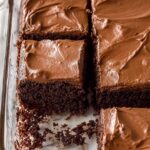 This Chocolate Mayonnaise Sheet Cake is a moist, rich, and easy-to-make dessert that combines the deep flavors of Dutch-processed cocoa and coffee with a creamy mayonnaise base for an irresistibly tender crumb. Topped with a luscious chocolate frosting made from melted bittersweet chocolate, butter, cocoa powder, and heavy cream, this classic sheet cake is perfect for gatherings, celebrations, or any chocolate craving.