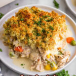 To keep the stuffing topping crispy, avoid covering the casserole with foil immediately after baking. Instead, let it cool uncovered for a few minutes. If you need to store leftovers, reheat them in the oven rather than microwave for best texture.