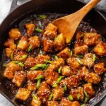 - Combine and Finish: Return the chicken to the skillet. Stir until the sauce thickens and coats the chicken, about 2-3 minutes. Remove the skillet from heat and top with sesame seeds and more sliced scallions.