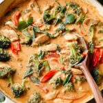 I recommend reheating gently over medium-low heat on the stove with a splash of water or broth to loosen the sauce. Avoid the microwave if possible to keep the creamy texture intact and prevent overheating that can curdle the coconut milk.